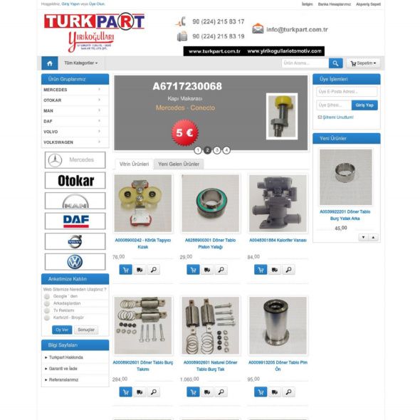 Turkpart , otomotiv orjinal ve yan sanayi yedek parça satışı yapmaktadır. Turkpart firması E-Ticaret web tasarım hizmeti ile ürünl...